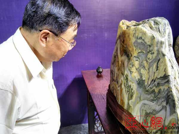 “有灵性的事物一定来自最圣洁的地方,西藏灵芝就是这件神石诞生的地方,为什么尊称为“神石”究其原因是这种石种在西藏也是屈指可数,藏民对它崇拜和信奉,称其为天上的石头,这就是这块标价1.7亿西藏神石‘定神山’的由来”,玉石参展商刘先生兴奋的说。