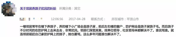 一楼邻居常年在楼下养鸽子,弄的楼下小广场全是鸽子屎,前后左右楼的窗户、防护网上也全是鸽子屎、鸽子毛。鸽子还不分时间地在防护网上走来走去,非常扰民。邻居们深受其害,但是找单位领导和社区领导都解决不了。养鸽子的人逮谁骂谁,就连驱赶自家防护网上的鸽子,她也要骂。这么多年的问题,谁也解决不了,该怎么办?