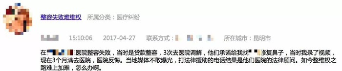 在某医院整容失败,当时是贷款整容,3次去医院调解,他们承诺给我修复鼻子。现在3个月已满,我再去医院时,医院却反悔。当时我录了视频,当地媒体不敢爆光,打法律援助的电话,结果是他们医院的法律顾问。如今维权之路十分艰难,怎么办啊?