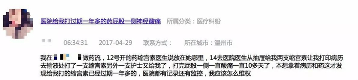 我在某医院做药物流产,12号开的药(缩宫素),医生说先放在她那里。14号去医院,医生从抽屉里拿给我两支缩宫素,让我打印病历后去输液处打一支,另外一支护士又给回我了。打完后一侧屁股一直酸痛,持续10多天了。想拿着病历和药找医院讨要说法,这才发现医院给我打的缩宫素已经过期一年多了。医院有记录有监控,我应该怎么维权?