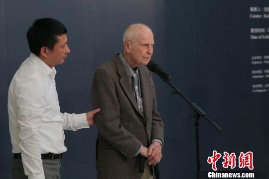 中新网杭州6月17日电 (王题题)在中国美术学院美术馆一楼展厅内,一幅幅色彩鲜明的抽象画静静的陈列在裱框内,与以往的抽象画有所不同的是,这些抽象画作运用了很多的文字。6月17日,“无所容形”美国艺术家当代绘画作品展在中国美术学院美术馆正式开幕。仪式上,90岁高龄的美国旧金山美术学院前院长Fred·Martin将其对中国三十年的感情,以赠送自己毕生重要的三十余件作品给中国美术学院(下称“中国美院”)的形式来表达。