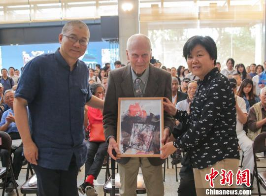 旧金山美术学院前院长Fred?Martin教授赠画仪式。 佚名 摄