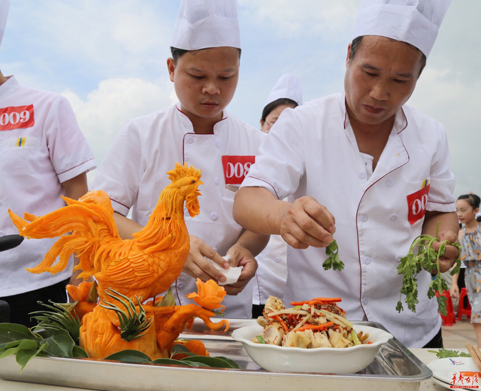 6月17日,由永州东安县组织的世界最大规模东安鸡烹饪美食节在东安县和谐广场亮相,这也是东安为国宴佳肴首次举行如此规模巨大的美食日活动,吸引了当地以及外地的很多美食爱好者来去品尝。这次活动,仅招募1000位东安鸡厨师就花费了不少力气。因为烹饪技法往往是十人十法,各有不同,到底是先放葱还是先放姜?几成热下锅等细节操作都没有统一定论。这次为了充分保证东安鸡的味道纯正,参与挑战的一千位厨师都是经过严格选拔的,保证每一位挑战厨师必须同宗同法,味道的统一。