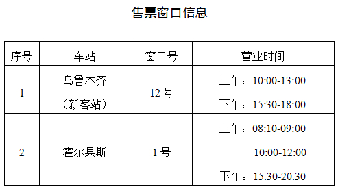乌鲁木齐站、霍尔果斯站设专口购票