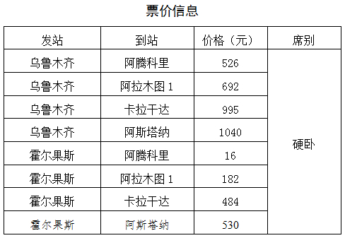 该趟国际旅客列车自乌鲁木齐至阿拉木图运行时间24小时,比现有经阿拉山口运行的国际旅客列车节省了8-10小时,与公路班车基本持平;乌鲁木齐至阿拉木图的票价为692元,比现有经阿拉山口运行的国际旅客列车节省100元左右。