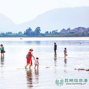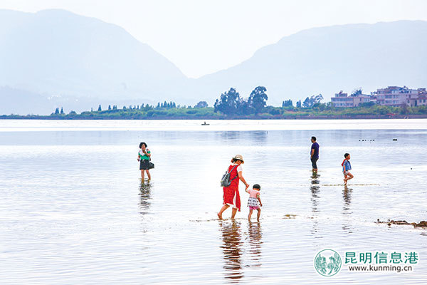 滇池水质改善,市民在水边愉快地玩耍。都市时报 首席记者张玉杰/摄