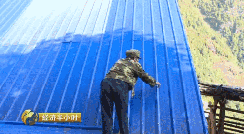 四个多钟头以后,记者终于来到了念坪村俄夺各组。一进村,记者便发现李三益家的房子已经变样了。2016年2月父子俩还在翻修的茅草屋顶如今已经换上了蓝色的铁皮瓦。不过,他内心更盼望的是有朝一日能够搬到山下生活。今年5月,他已经报名参加易地搬迁项目。