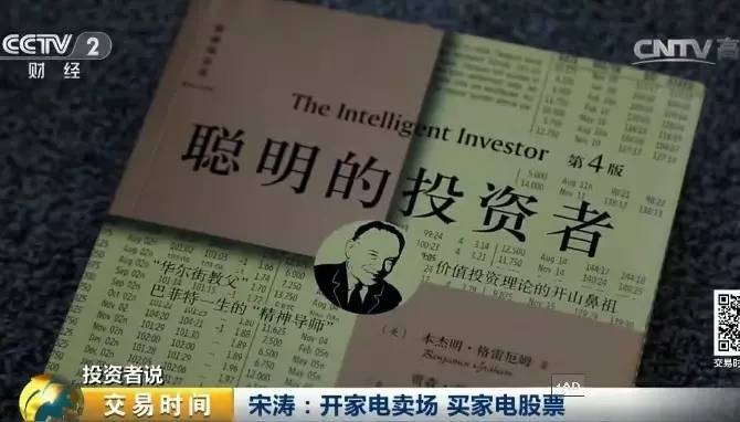河南投资者 宋涛:你比如说今年你像格力,三期报财报一般会放到10月份,10月份才出,你还能看到他的销售情况,但是我们可能从6月份、7月份、7、8月份这时候旺季,我们的财面的销售数据的反馈一线的信息,我们可能就比同为作为投资人了解的要早,我们直接就有一手信息,就不用再进行市场调研,对每个城市或者每个商场去做一些调研,这个麻烦我们就省去了。2011年,一次偶然的机会,宋涛上网发现不少大V都会推荐初入股市的投资者去学习一本书——《聪明的投资者》。这本书是由本杰明·格雷厄姆所著。讲述了对于价值投资的理解以及投资安全边际的分析策略。引导普通投资者学会理性投资。