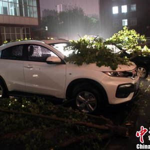 河北保定遇强降雨冰雹 街头大树被连根拔起(图)