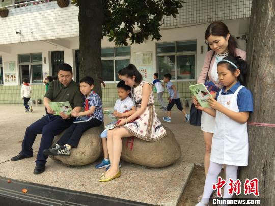 家长与孩子共读儿童诗。 魏佳文 摄