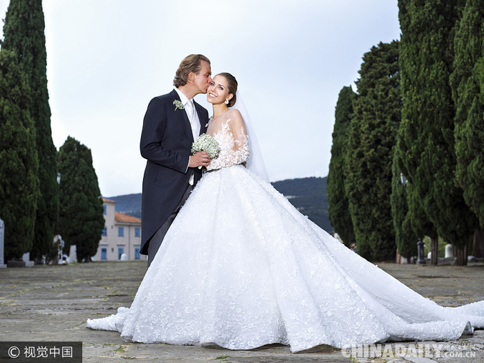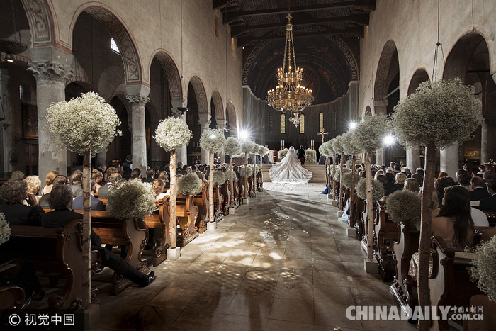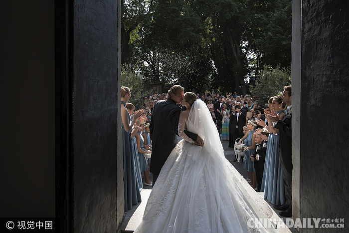 当地时间6月16日,世界著名水晶首饰品牌--奥地利施华洛世奇23岁的女继承人维多利亚·施华洛世奇在意大利举行婚礼。(图片来源:视觉中国)