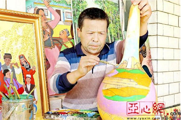 亚心网讯(记者成越越 通讯员蔡蔬)6月的南疆热浪滚滚。6月21日,库车县阿拉哈格镇英其开艾日克村农民吐鲁洪·依米尔正加紧在一个半人高的葫芦上绘画。