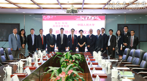 中国人民大学副校长伊志宏和张磊签订了捐赠协议。