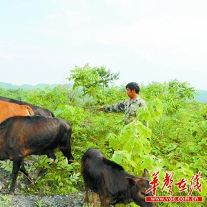边聊边走。山坳里有20余头牛在悠闲吃草,正在放牛的贫困户杨国庆说:“村里现有构树少了,不能满足养殖需要,盼村里构树项目尽快上马。”村干部杨理忠解释:“构树扶贫是我国扶贫项目之一。村里有很多构树,但还没利用起来。我们计划再种植100亩养殖用构树,发展规模养殖和饲料加工业。”