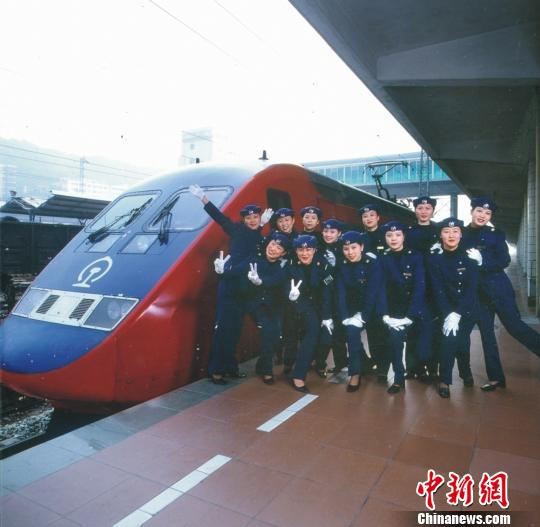 早年广九直通车新时速列车乘务员合影 广九客运段供图