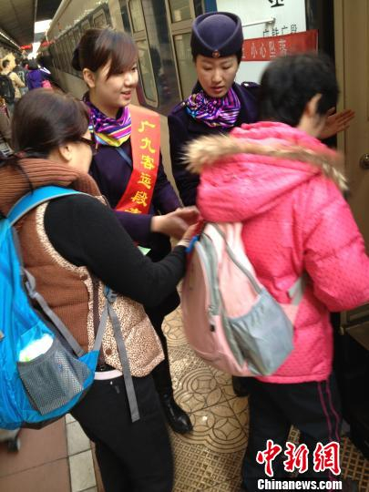广九直通车志愿者站台为旅客服务 赖雁 摄
