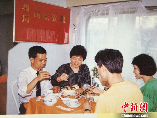 广九直通车恢复运行早期列车餐车上服务旅客的情景 广九客运段供图