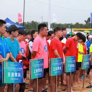 中新网威海6月24日电 (记者 李纯)为期三天的2017年全国沙滩手球锦标赛暨国际沙滩手球邀请赛,24日在位于山东省威海市南海新区的国家沙滩手球训练基地开赛,吸引来自国内外26支代表队的400余名男女队员参加角逐。