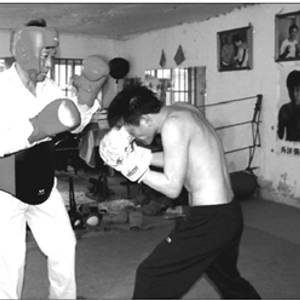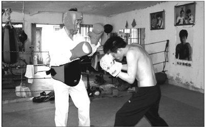 不一会儿,汗水就开始冒出,很快形成一条条小溪流,流过汪强的额头、脸颊和赤裸的上半身。他的心跳开始加速、拳击更加迅猛、神情更加专注。有那么一瞬间,似乎一切都在他眼前消失。