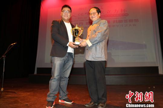 中国驻南非大使馆文化处参赞郑文为成人组冠军得主张大雨颁奖。 宋方灿 摄