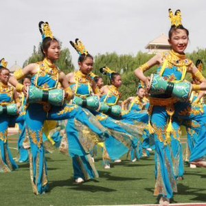 为此,敦煌市还组织10余名知名民间艺人,走进城乡20余所学校,开展非物质文化遗产教演活动,帮助青少年学生认知敦煌传统文化艺术。在条件成熟的12所中、小学校,开设艺术类课程,成立社团活动兴趣小组,聘请和组织专业人员教授敦煌乐舞基本技能,演绎敦煌传统文化的曲艺小品、敦煌舞蹈等。