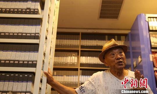 凌峰在片库里向中新社记者讲述《八千里路云和月》背后的故事。 刘双双 摄