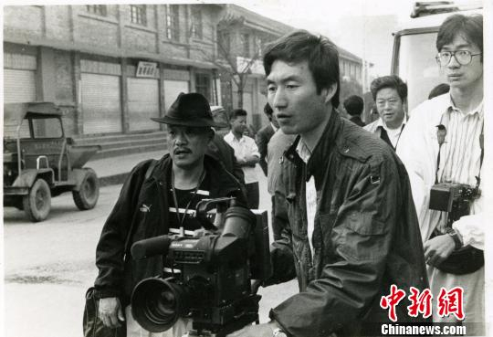 1987年,凌峰与中新社伙伴一起拍摄《八千里路云和月》。 受访者供图