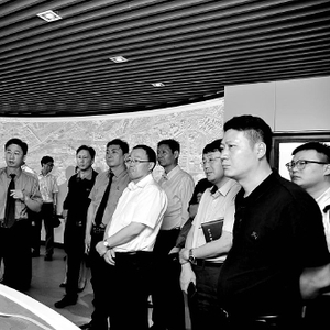 代表委员们在金山地区检察院食药环检察中心的沙盘展示区视察。