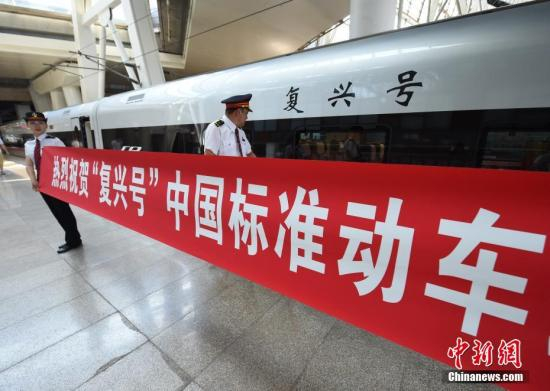 6月26日,由上海虹桥发往北京南站的最新版高铁列车“复兴号”驶离站台。中新网记者 康玉湛 摄