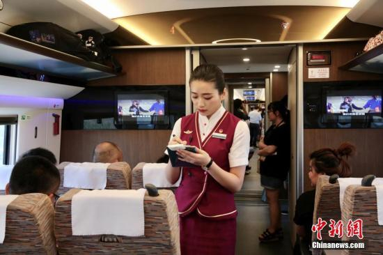 记者登上首发京沪线的“复兴号”高铁列车,看到车体断面增加了、空间增大了,按时速350公里试验运行,列车运行阻力下降7.5%以上,人均百公里能耗降低17%,车内噪声下降1到3分贝。