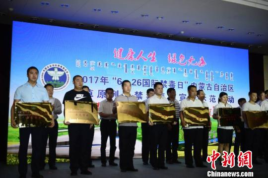 当日还为获得内蒙古自治区青少年毒品预防教育“6·27”工程示范学校和优秀教育工作者颁发了荣誉牌匾及证书。(完)