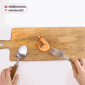 如果我们在一个非常优雅的环境吃饭,自己动手剥壳吃虾会影响到自己的吃相,双手还会沾染虾的腥味。这时只要借助勺子和叉子,只需3步,不粘手就能吃到完整的虾肉。