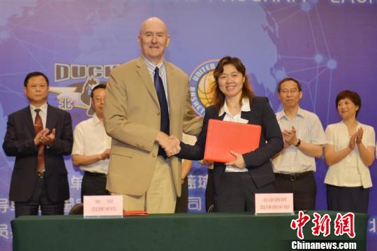 6月28日,北京首钢篮球俱乐部和美国篮球学院签约。 主办方 摄