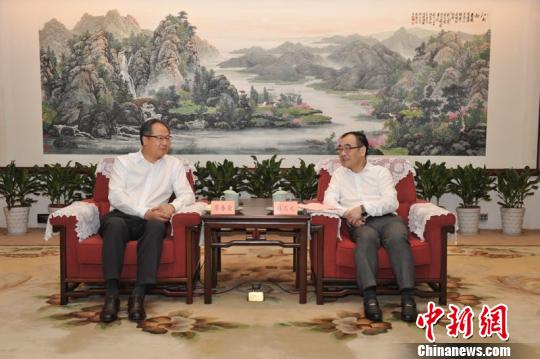 浙江省委常委、省委统战部部长冯志礼会见廖春荣会长一行。 陈谋荃 摄
