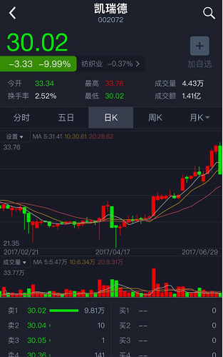 盘面上看,两只股票近期都出现股价拉升,公司业绩则和股价上涨趋势严重背离。截至发稿,凯瑞德报30.02元/股,跌9.99%;顺威股份报15.98元/股,跌9.97%。