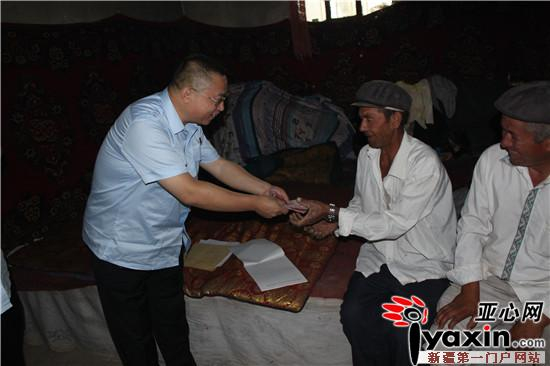 此次行动中,发放小组还来到喀什地区麦盖提县昂格特勒乡托万昂特勒克村村民艾山•买买提家中,在当地村干部的共同见证下,向其发放执行款5000元。
