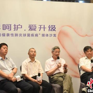 早呵护爱升级”预防侵袭性肺炎球菌疾病媒体沙龙29日在北京召开。 闫彤 摄