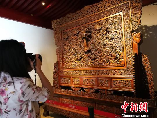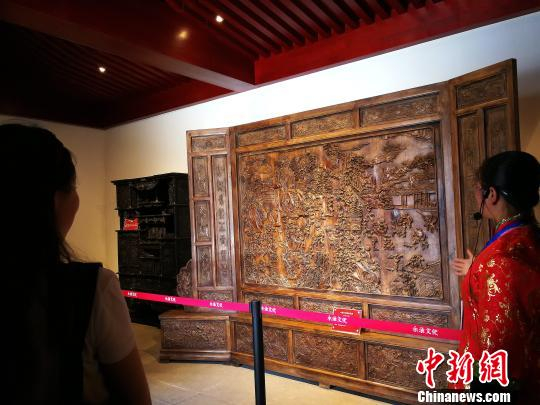 图为青海永录民俗博物馆内珍藏的大型屏风。 张添福 摄