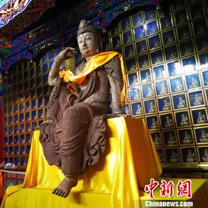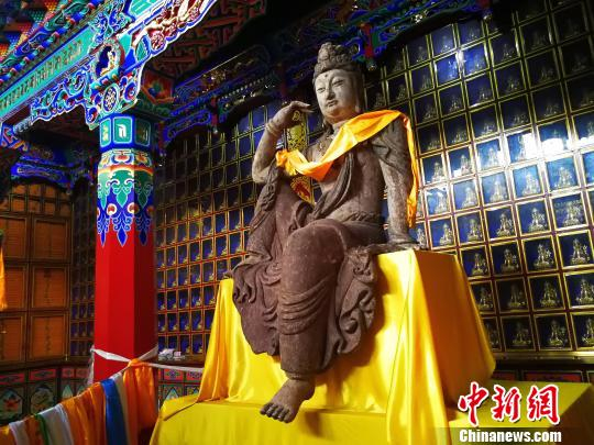 图为2016年从泰国迎请回国的世界范围内罕见的自在观音坐像。 张添福 摄