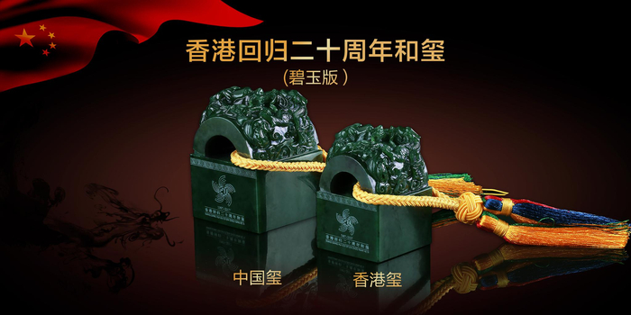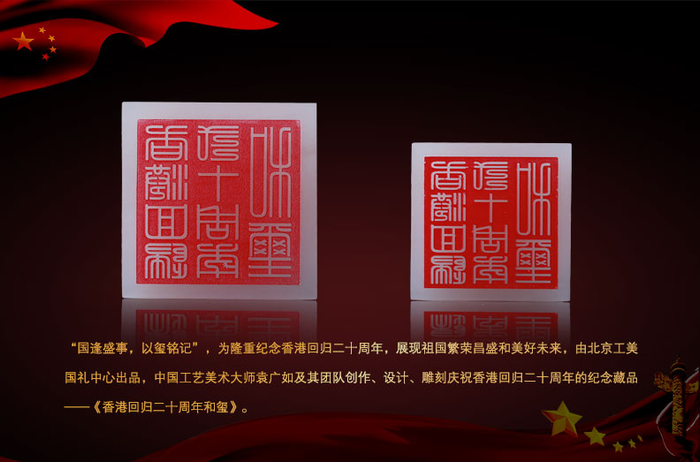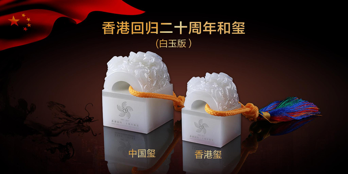 为纪念香港回归二十周年,北京工美国礼中心特别出品“香港回归二十周年和玺”,该玉玺由中国工艺美术大师袁广如担纲总设计,以珍贵和田玉为料,取型汉瓦玺。“香港回归二十周年和玺”已在郑州轩阁商贸有限公司、郑州国一韵品文化传播有限公司、郑州国一金典文化传播有限公司、郑州国一典藏文化传播有限公司正式发售。