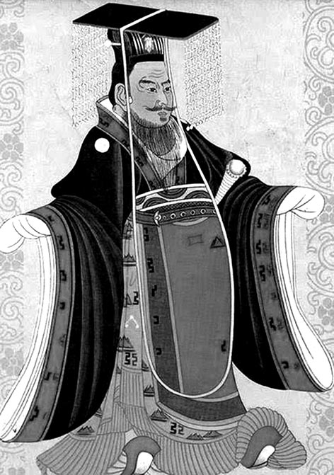 《史记·封禅书》载:“邹子之徒论著终始五德之运,及秦帝而齐人奏之,故始皇采用之。”《史记·秦始皇本纪》载:“始皇推终始五德之传,以为周得火德,秦代周德,从所不胜。方今水德之始,改年始,朝贺皆自十月朔。衣服旄旌节旗皆上黑。数以六为纪,符、法冠皆六寸,而舆六尺,六尺为步,乘六马。更名河曰德水,以为水德之始。”这是依五行的配列,规定政令、服色、符法、冠舆等制度。秦始皇宣扬自己有水德,而五行中水的代表色是黑,所以秦朝皇帝的朝服是黑色的。百姓称黔首,官员的服装也均为黑色,甚至那时的黄河也称作“黑水”。