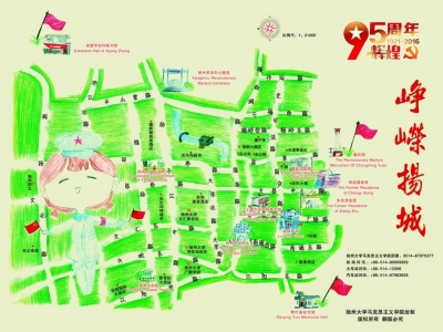 其实,在扬州,也有不少的旅游景点,比如扬州大学马克思主义学院就有一份现存的“峥嵘扬城”红色景区地图,这张地图主要展示了“五四”时期到土地革命时期对扬州党建工作和革命作出过贡献的革命先烈遗迹。