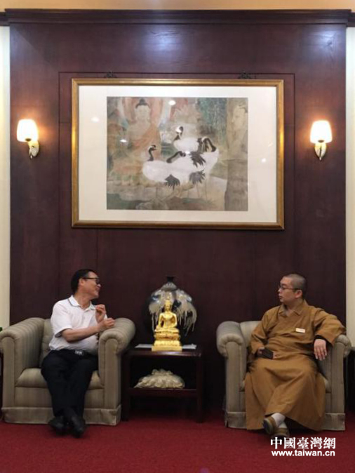 佛光山慧屏法师在麻竹园贵宾厅接见参访团全体成员。(中国台湾网发)