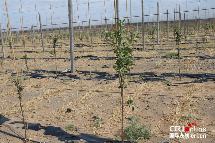 据公司负责人王小亮介绍,这支治沙队伍采取了开荒造林、引水灌溉,以及扎草方格、种植苜蓿等多项措施,使沙化的土地被固定下来,项目区得到了蓬勃发展。目前,公司已在当地种植果树苗达30万株,种植面积3000亩。项目的实施不仅改变了当地沙石化的生态环境,还因种植矮砧密植有机苹果,产生了很好的社会和经济效益。王小亮说:“我们企业的规模化建设吸纳带动了周边移民的经果林种植,包括果箱包装业、汽车运输业、以及养殖业,做到了一二三产业的融合发展。我们园区每年的用工量达到2万人次,几乎每天能解决300人次的劳动力,为周边的农民增收1000多万元,非常有效地促进了区域经济发展,对我们南山台子地区优质高效栽培技术的示范区推广具有极大的带动作用。”