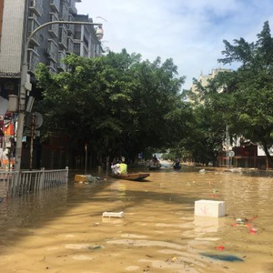 由于强降雨与洪水走势同向,暴雨已造成严重的洪涝灾害,广西融水县、全州县、融安县等地部分街区被积水浸泡严重。中新网记者在柳州市融水县城看到,该县城遭受洪涝灾害,县城近半城区被积水浸泡,部分街区水位高涨,民众出行依靠小船或皮划艇等。