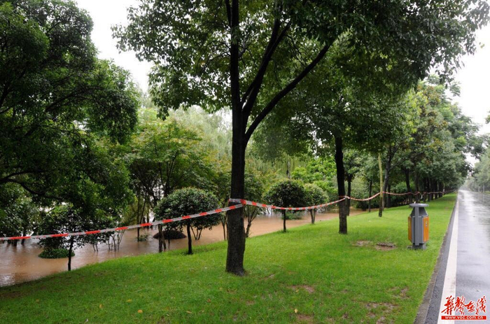 洪水逼近橘子洲观光道。