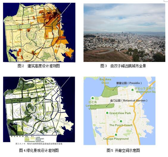 在宏观层面,旧金山城市设计确立了市域空间发展的骨架和结构,在空间骨架、街区尺度、建筑高度、建筑体量、历史价值、城市感知、视线通廊等物质空间和城市意象等方面,对城市风貌提出了总体要求(图1)。