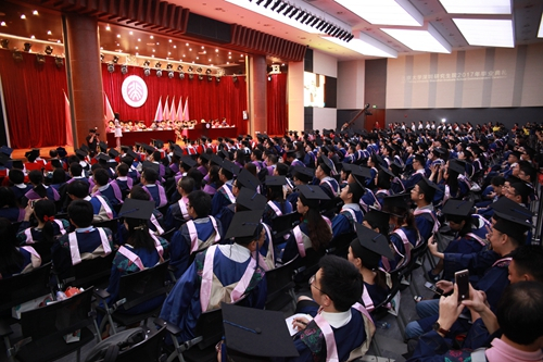 2017年7月1日下午,北京大学深圳研究生院2017年毕业典礼在北京大学汇丰商学院负二楼报告厅举行。今年北大深研院共有864名全日制毕业生,其中博士研究生52名,硕士研究生812名,包括41名留学生;此外,还有EMBA毕业生74名,在职研究生进修班毕业生91名。