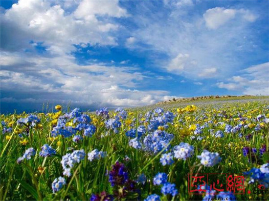 五彩斑斓的吐尔加辽草原,湛蓝的天空下,山花盛放