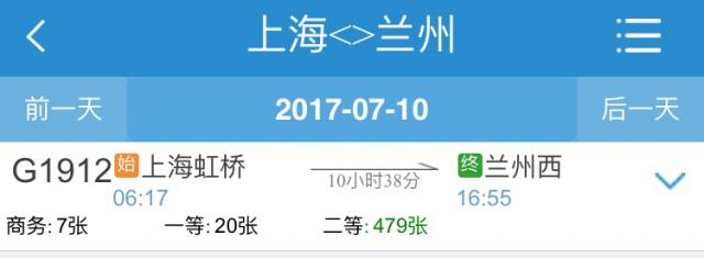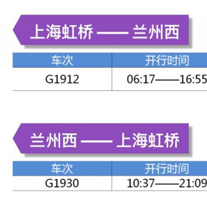 来自铁路上海站的消息,宝鸡至兰州高速铁路将于7月9日开通运营,7月10日起上海虹桥将正式开行兰州西方向的高铁,往返车次为G1912和G1930次。以上车次车票已于7月6日16时正式发售。
